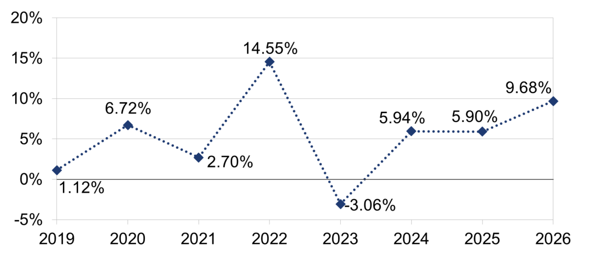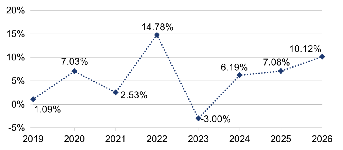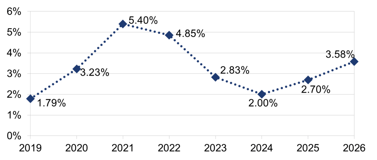 Part A Deductible and Coinsurance Percentage Increases, 2019-2026