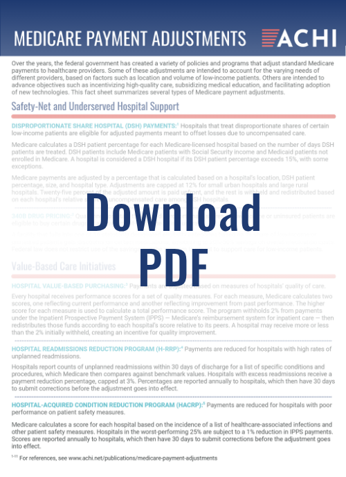 Over time, the federal government has implemented a variety of payment adjustments and subsidy programs that work to fill these gaps. This fact sheet summarizes several types of Medicare payment adjustments and explores how they supplement the basic payment models.
