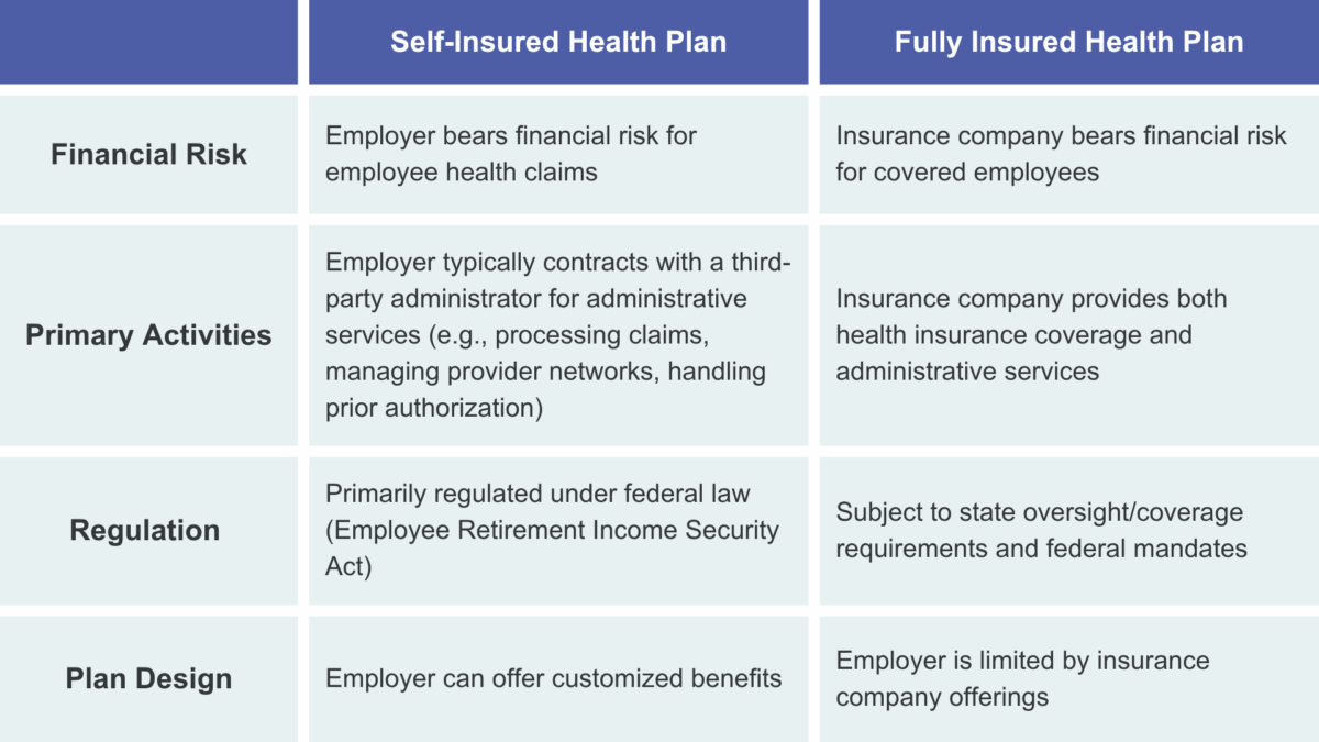 TPAs provide administrative services to support self-insured health plans, but they do not bear any direct financial risk for the cost of care. Employers often contract with TPAs to administer healthcare benefits on their behalf, as many employers lack the resources to manage health plans themselves.[2] This arrangement is distinct from fully insured health plans, in which insurance companies are financially responsible for paying medical claims (see Figure 1). Typical activities of TPAs include: